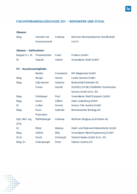 FACHVERBANDSAUSSCHUSS 201 – BERGWERK UND STAHL Obmann: Mag. Henckel von Andreas Donnersmarck Kärntner Montanindustrie Gesellschaft m.b.H. Obmann – Stellvertreter: Bergrat h.c. DI Friesenbichler…