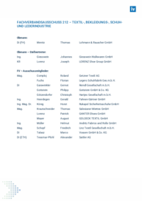 FACHVERBANDSAUSSCHUSS 212 – TEXTIL-, BEKLEIDUNGS-, SCHUHUND LEDERINDUSTRIE Obmann: DI (FH) Menitz Thomas Lohmann & Rauscher GmbH Obmann – Stellvertreter: Ing. Giesswein Johannes Giesswein…
