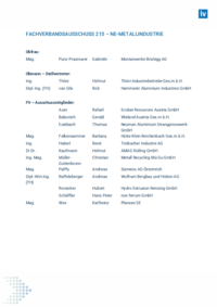 FACHVERBANDSAUSSCHUSS 215 – NE-METALLINDUSTRIE Obfrau: Mag. Punz-Praxmarer Gabriele Montanwerke Brixlegg AG Obmann – Stellvertreter: Ing. Thöni Helmut Thöni Industriebetriebe Ges.m.b.H. …