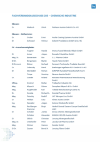 FACHVERBANDSAUSSCHUSS 205 – CHEMISCHE INDUSTRIE Obmann: Dr. Wieltsch Ulrich Patheon Austria GmbH & Co. KG Obmann – Stellvertreter: Dr. Gruber Ernst Axalta Coating Systems Austria GmbH DI …