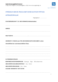 Senden Sie das ausgefüllte Formular an: MMag. Marion Poglitsch, Schwarzenbergplatz 4, 1031 Wien, marion.poglitsch@iv.at STIPENDIUM DER DR. FRANZ JOSEF MAYER-GUNTHOF STIFTUNG ANTRAGSFORMULAR…