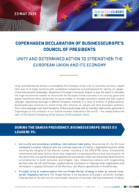 23 MAY 2025 COPENHAGEN DECLARATION OF BUSINESSEUROPE’S COUNCIL OF PRESIDENTS UNITY AND DETERMINED ACTION TO STRENGTHEN THE EUROPEAN UNION AND ITS ECONOMY Unity and determined actions to strengthen…